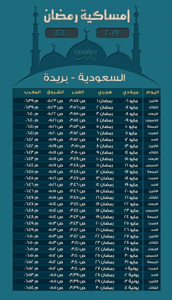 امساكية رمضان 1440 بريدة حلول ويب