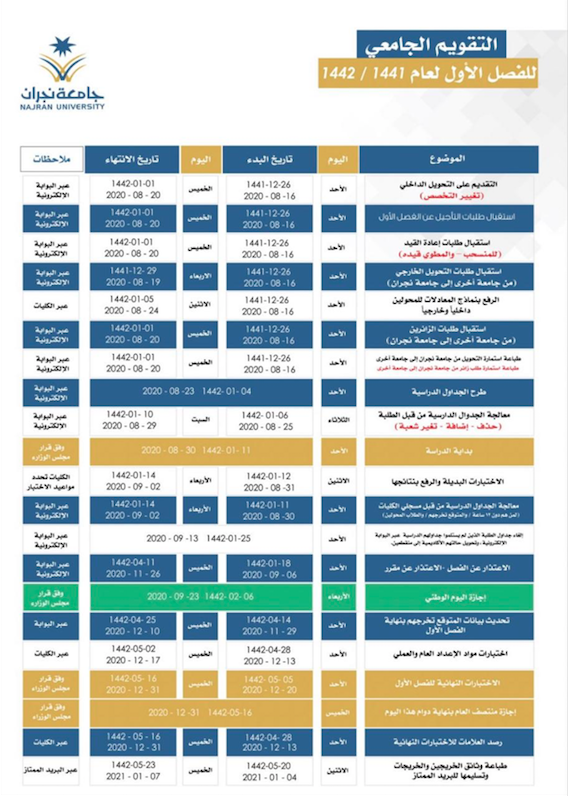Deanship Of Admission And Registration التقويم الجامعي 1439 1440 هـ التقويم الجامعي للأعوام السابقة